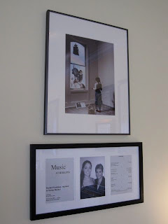 The top frame contains an awesome picture my parents gave me as a gift – a little girl version of Dorothy and Toto, looking out the window at the characters from The Wizard of Oz. It’s one of my favorite movies of all time. Below is a framed copy of my undergraduate senior recital program, and a picture of my mom and I taken right after the recital. Yes, I am a giant compared to her.
