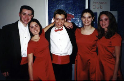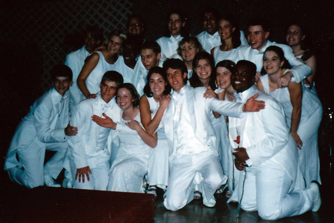 We actually called ourselves a “swing” choir rather than a show choir, because we performed mostly jazz songs. In this picture, we’re doing “Moonglow” – that’s me in the back, getting dipped by my sophomore year crush. We never dated, but almost all of my high school boyfriends were musical types. So it surprised lots of people when I went and married a non-musical soccer player :)